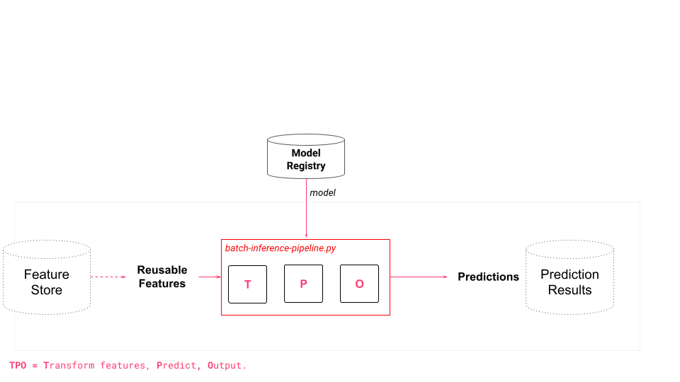 A batch inference pipeline is a program that takes as input a batch of data and a model, and outputs predictions that are typically written to some sink, such as a database.
