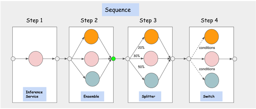 The Inference Graph within KServe tackles the intricacies of contemporary ML inference systems, where multiple models work together to make predictions. It facilitates the creation of complex pipelines by defining a graph structure comprising nodes, each with steps that guide to InferenceServices or other nodes.