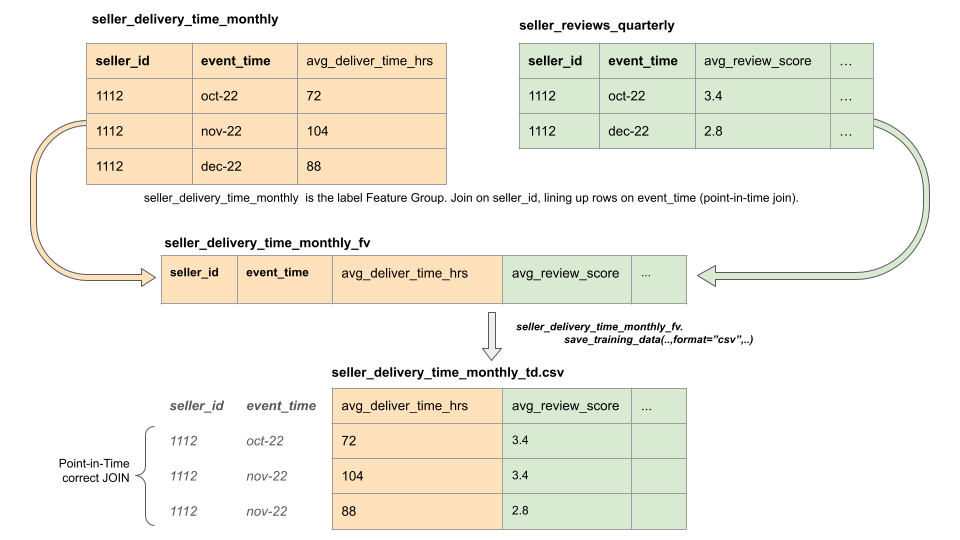 When constructing a snapshot of data (e.g., training data or batch inference data) from precomputed features spread across different feature groups, we often need to construct a snapshot of feature values at a specific point in time. For example, a training dataset for supervised ML is a snapshot of feature values at the time of the observation of each label in each row in the training dataset.
