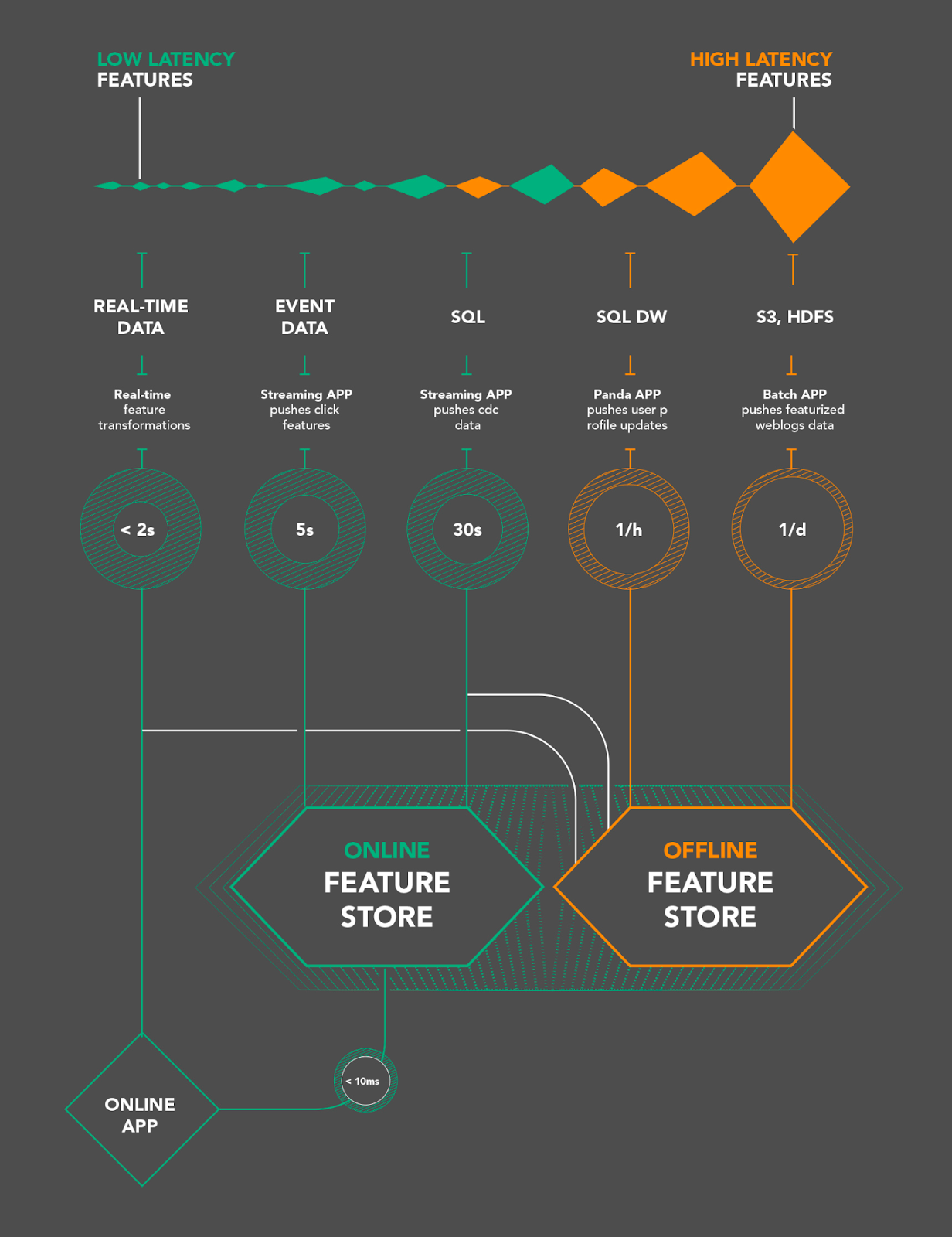 Der Feature Store ist ein Data Warehouse mit Features für ML. Architektonisch unterscheidet es sich vom traditionellen Data Warehouse dadurch, dass es sich um eine duale Datenbank handelt.