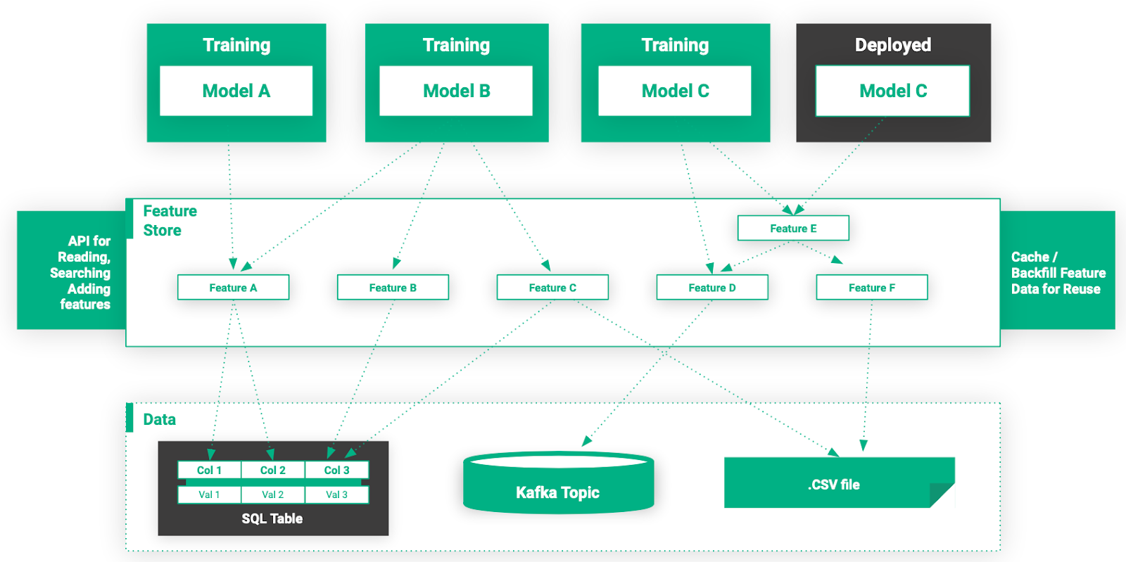 Abbildung 7. Durch die Zentralisierung der Funktionsspeicherung innerhalb der Organisation wird die Anlaufphase für neue Modelle und Machine-Learning-Projekte verkürzt.
