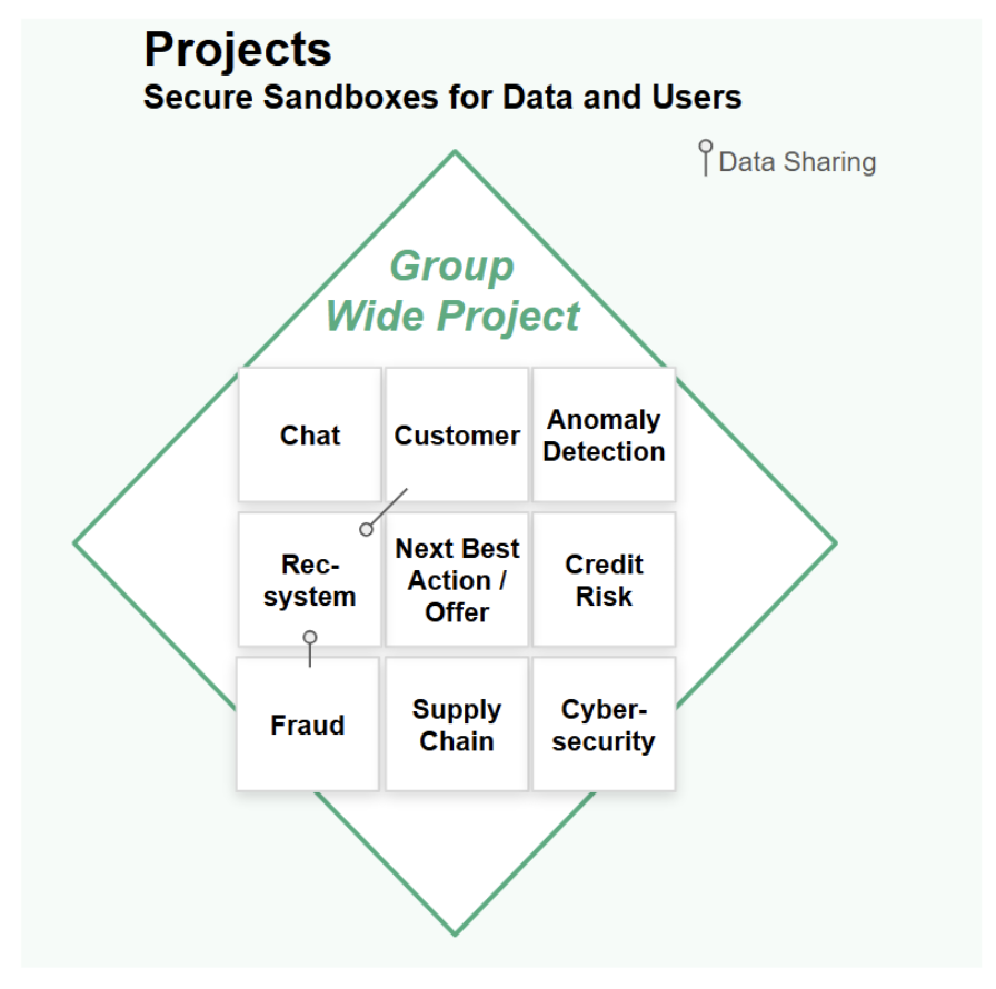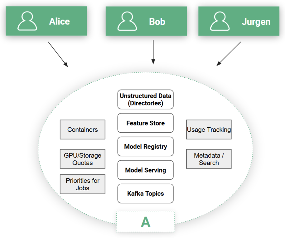Figure 3. Every project has members, its own private data and AI assets/services, and quotas/priorities for compute/gpus/jobs.