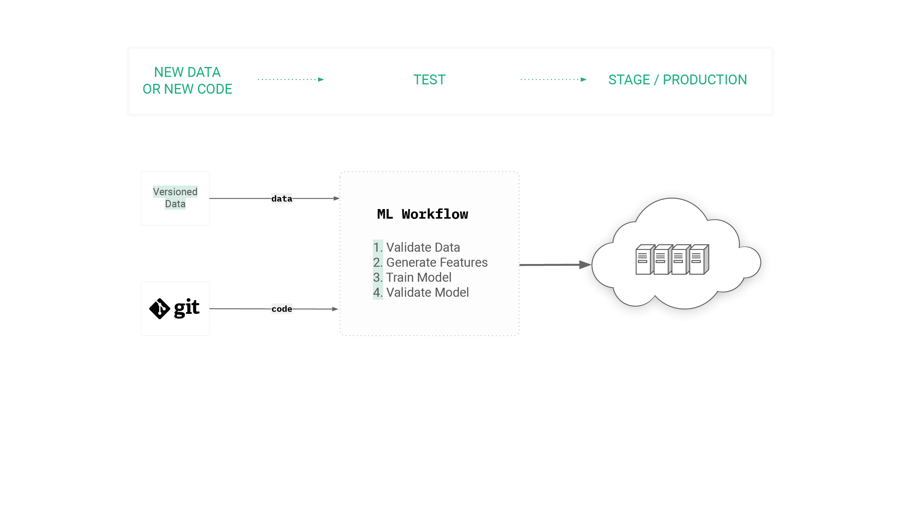 Figure 2. High Level MLOps CI/CD Workflow triggered by changes in either source code or data.