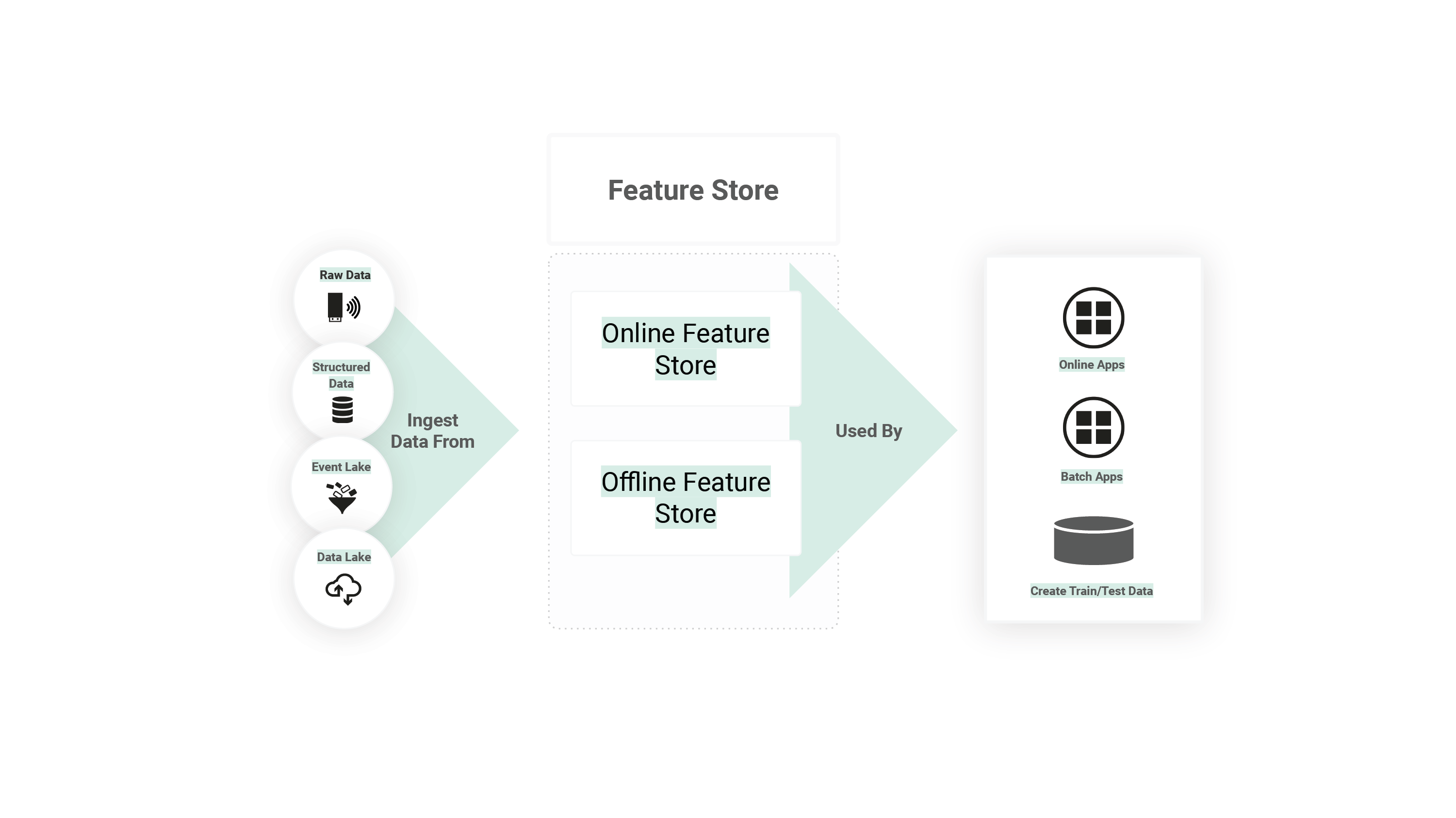 The feature store enables transformed data (features) to be reused in different models. When you have a feature store, you no longer need end-to-end ML pipelines from raw data to models. You can decompose end-to-end ML pipelines into two separate pipelines that each run at their own cadence: (1) feature pipelines that ingest data from backend systems, validate it, featurize it and cache it in the feature store, and (2) training pipelines that train models from feature data, validate those models, and deploy them to production.