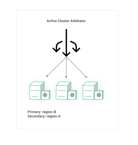 The second abstraction in the Multi-Region architecture is the Active Cluster Arbitrator which is an oracle machine deciding which region is Active and which region is Passive. It is the source of truth for all Active-Passive components as we will see later on.