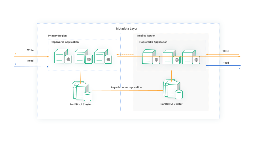 Figure 4: Multi-region Active/Passive Hopsworks Metadata layer