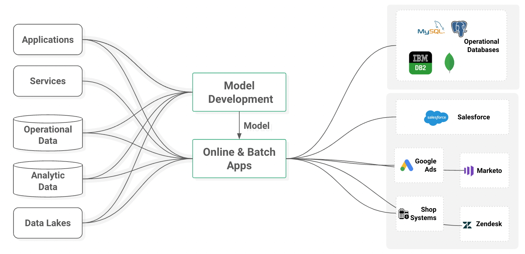 The value of ML models is realized either when (1) predictions are made on a regular basis, and then fed back into operational systems (e.g., Salesforce for CRM) where the business can act on the predictions and in some form improve decision making or (2) when a user/customer interacts with a product which is powered by an online ML model improving customer experience.